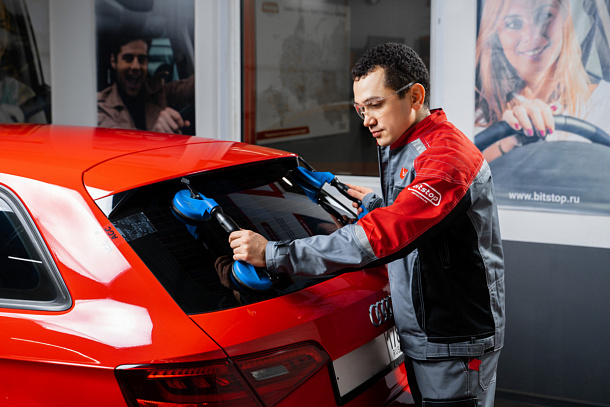 Как в Bitstop устанавливают заднее стекло